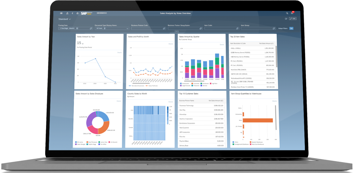 交互式分析:借助與標(biāo)準(zhǔn) Excel 功能集成的 SAP B1,從多個視角了解業(yè)務(wù)狀況。
