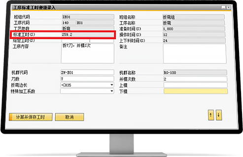 只需設(shè)置每道工序的加工參數(shù),系統(tǒng)根據(jù)標(biāo)準(zhǔn)計(jì)算邏輯自動(dòng)生成定額工時(shí)。