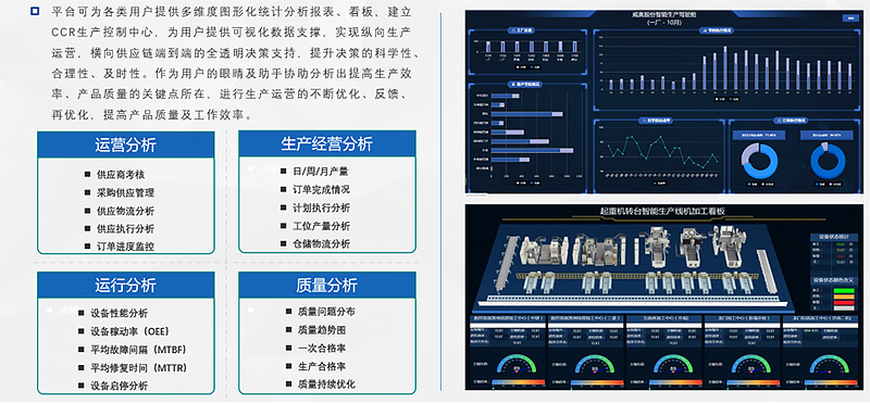 中科華智裝備制造MES解決方案,通過采集生產(chǎn)過程中的質(zhì)量、設(shè)備、工藝、物料、檢測等數(shù)據(jù),為裝備制造大數(shù)據(jù)分析平臺的建立提供數(shù)據(jù)支持,同時,通過多個層面優(yōu)化生產(chǎn)管理模式,將為裝備制造企業(yè)實(shí)現(xiàn)信息平臺一體化、生產(chǎn)計(jì)劃高效協(xié)同、生產(chǎn)數(shù)據(jù)可視化、質(zhì)量過程可追溯、生產(chǎn)與管理集成系統(tǒng)最優(yōu)化。
